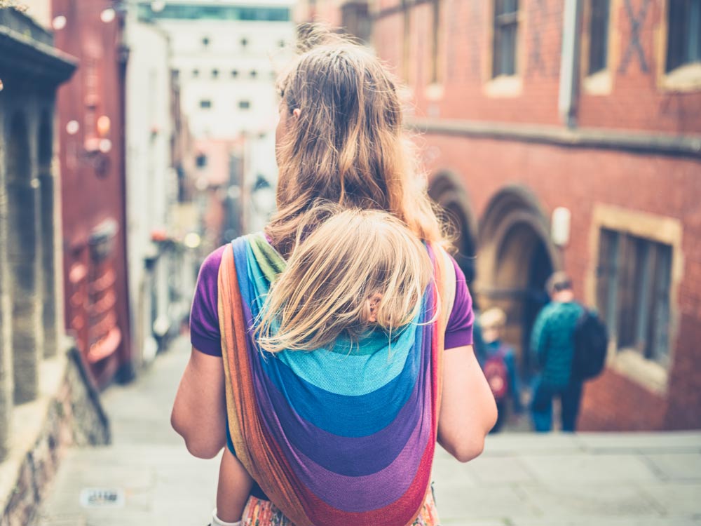 Babytrage oder Tragetuch
